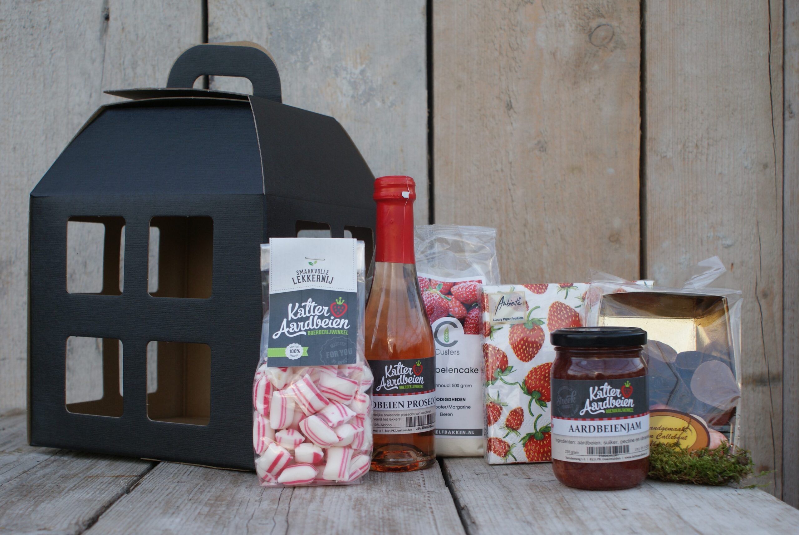 Dit feestelijke pakket bevat allerlei lekkere aardbeien producten! Origineel verpakt in een lantaarn.