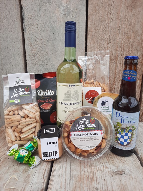 Dit pakket ‘ Wijn & Bier geeft plezier’ heeft t goede van allebei.
