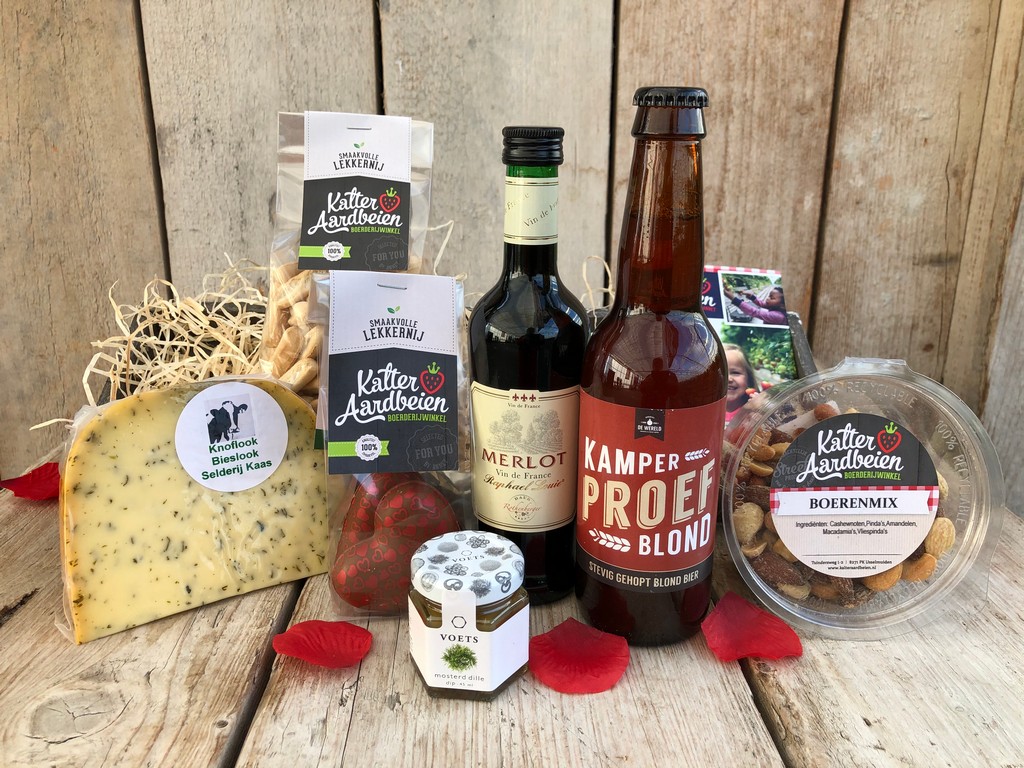 - Een flesje chardonney, deze witte wijn kan eventueel ook vervangen worden door rode wijn of ander biertje (aangeven bij het bestelformulier)
