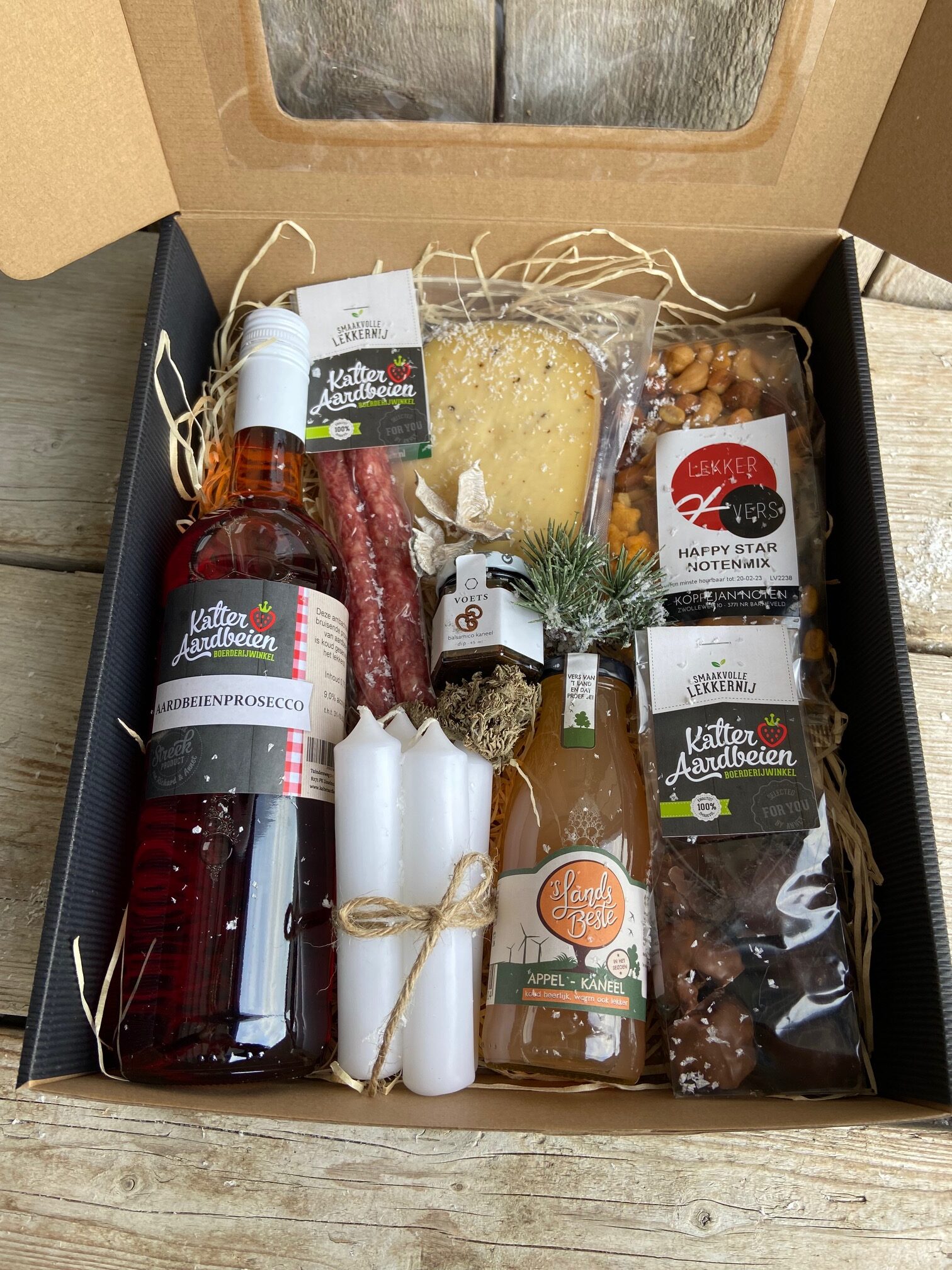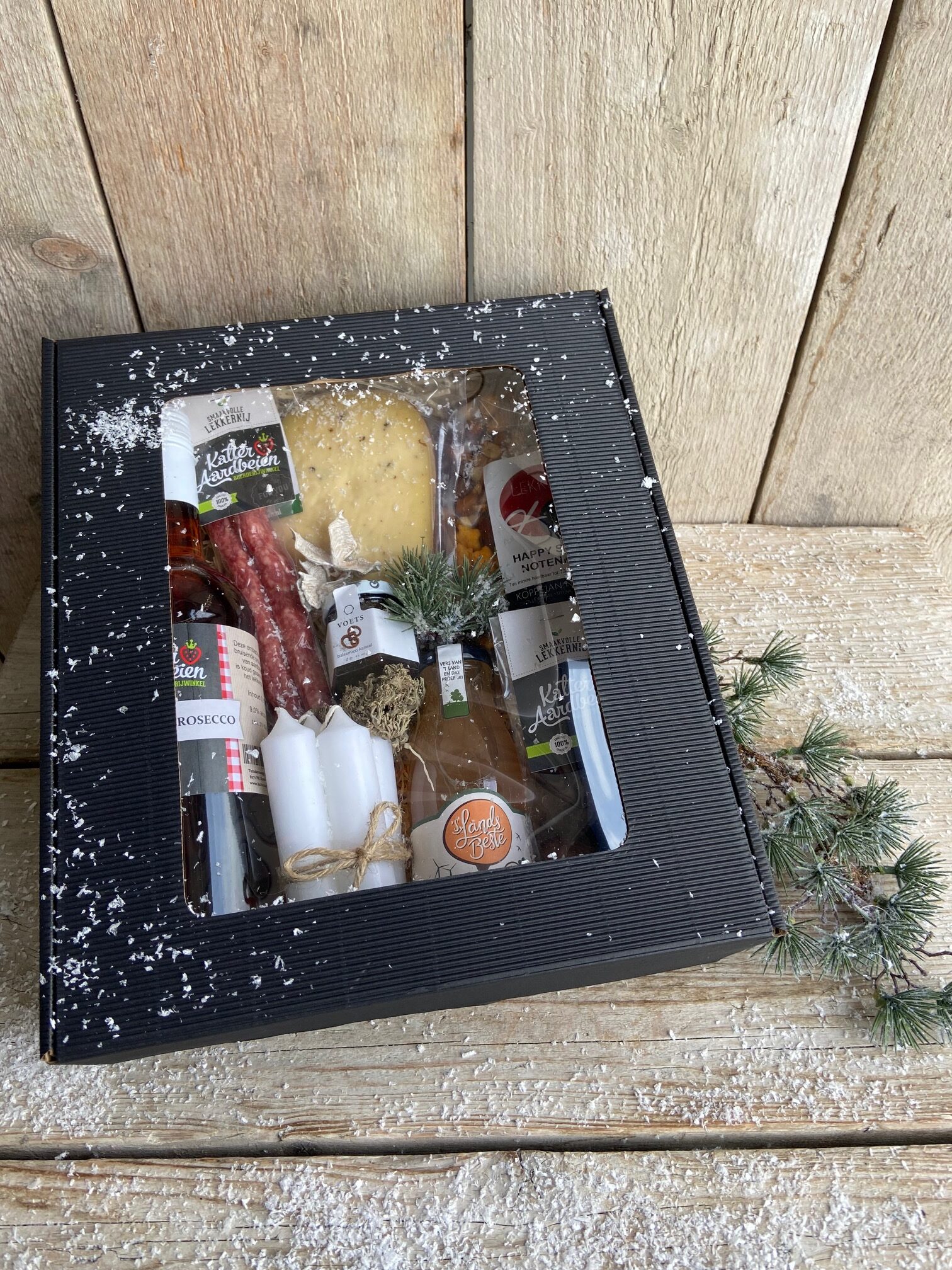 Dan heb je aan dit pakket voldoende! Allemaal lekkere producten in een mooie doos.