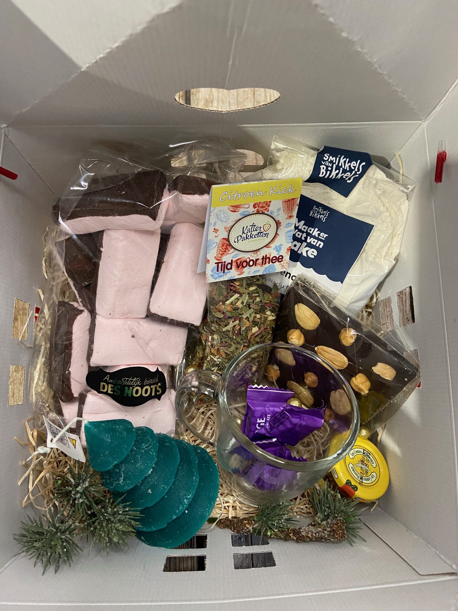 - en een mooie kaars in de vorm van een dennenboom