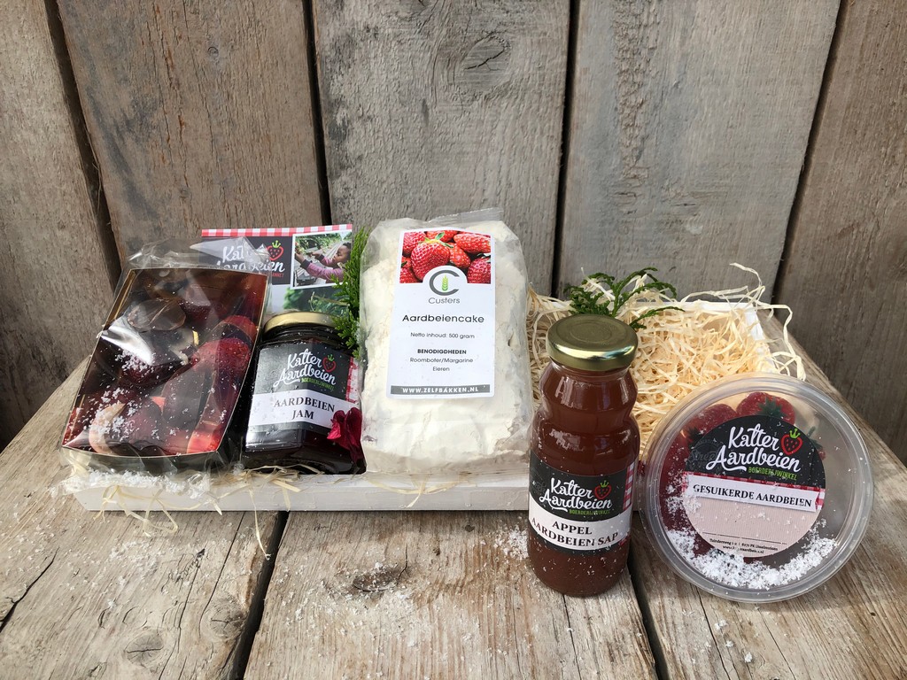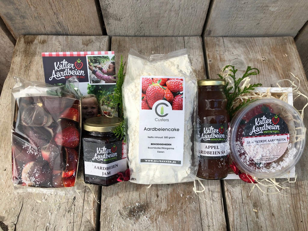 Dit Kalteraardbeien kerstpakket bevat een aantal van onze lekkerste aardbeienproducten.