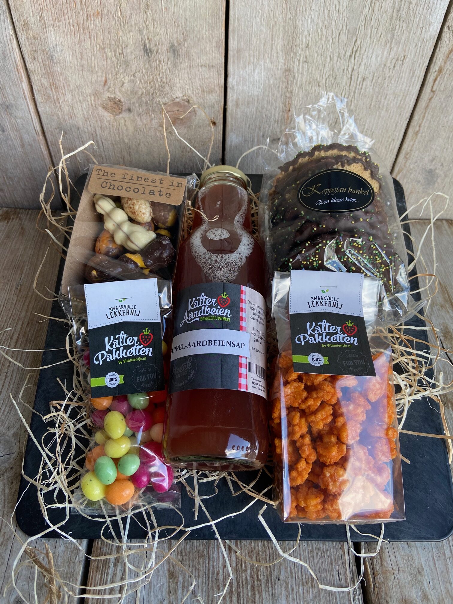 Het pakket bevat wordt opgemaakt op een mooi vierkant plateau en bevat: