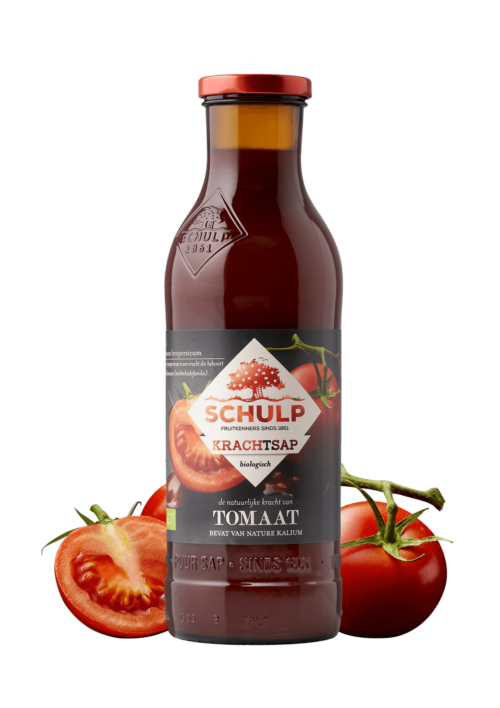 Tomaten kenmerken zich door het gehalte aan secundaire plantenstoffen, zoals lycopeen. Dit is onder andere het natuurlijke pigment waaraan tomaten hun rode kleur danken. Ook is tomatensap van nature een bron van kalium. Ons gebruiksadvies: dagelijks ± 150 – 250 ml.